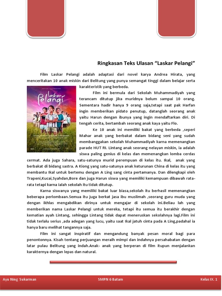 Contoh Teks Ulasan Film Laskar Pelangi [j0v63kvmpoqx]