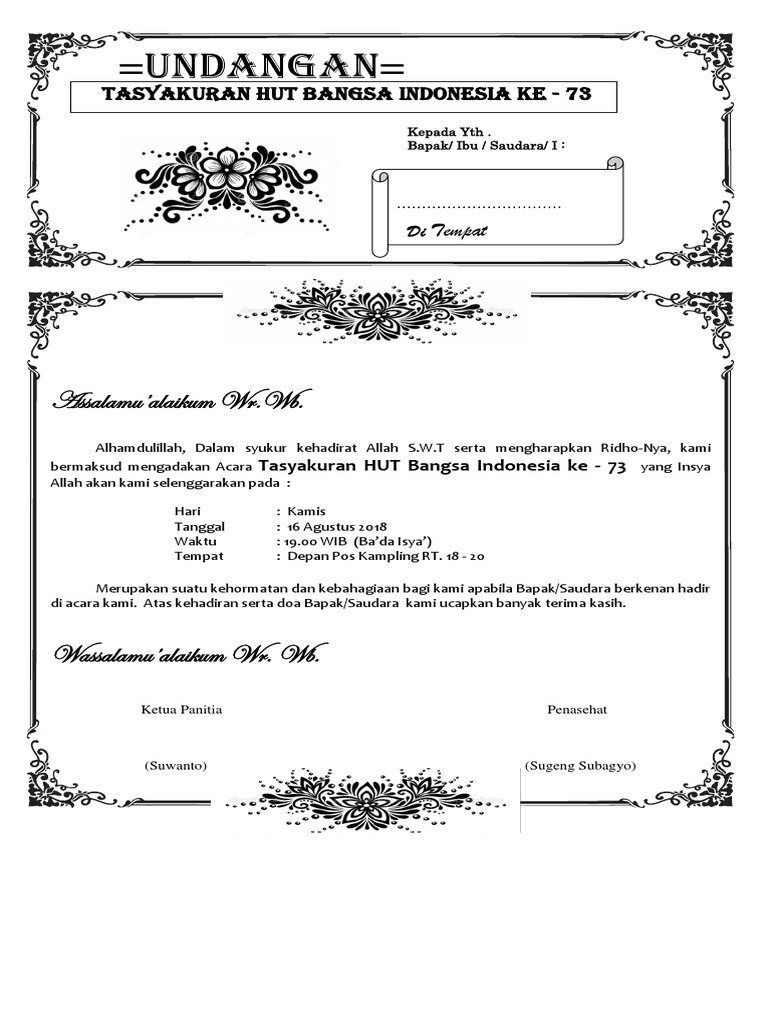 PDF) FORMAT UNdangan syukuran selamatan | Tri Astomo - Academia.edu
