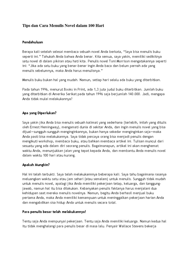Tips Dan Cara Menulis Novel Dalam 100 Hari