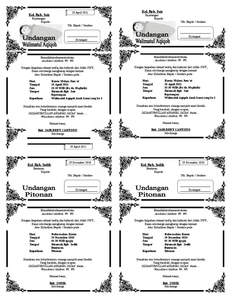 Contoh Surat Undangan Aqiqah Dan Khitanan