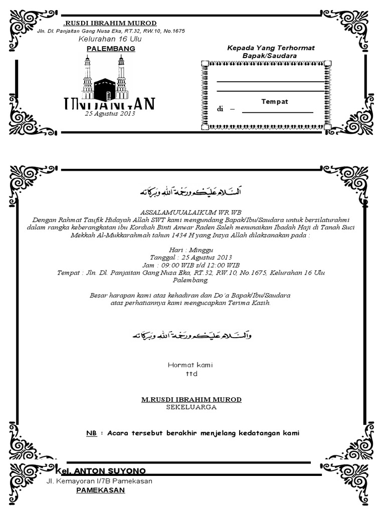 Contoh Undangan Tasyakuran Haji Word - Nusagates