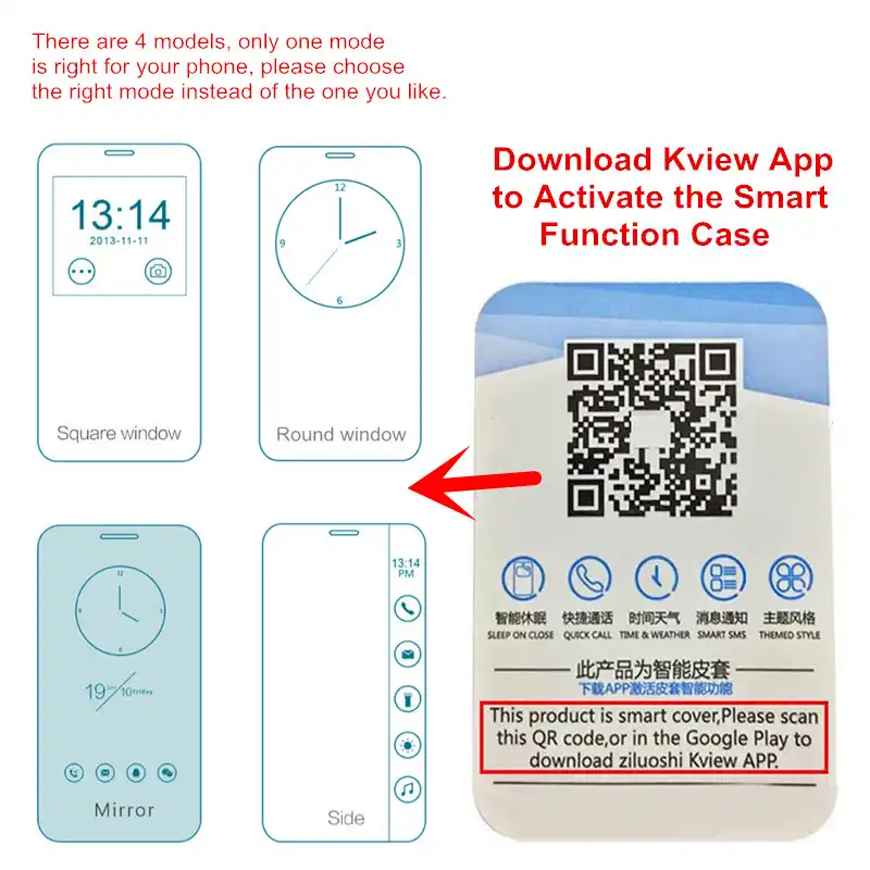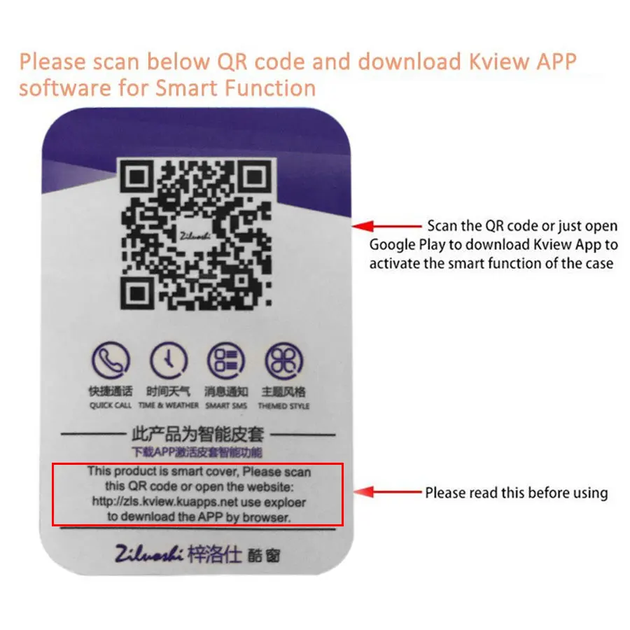 Scan QR code to install Kview APP for Clear View Flip Cover …