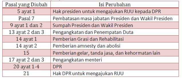 Sebutkan 3 perubahan uud 1945 sebelum dan sesudah amandemen …