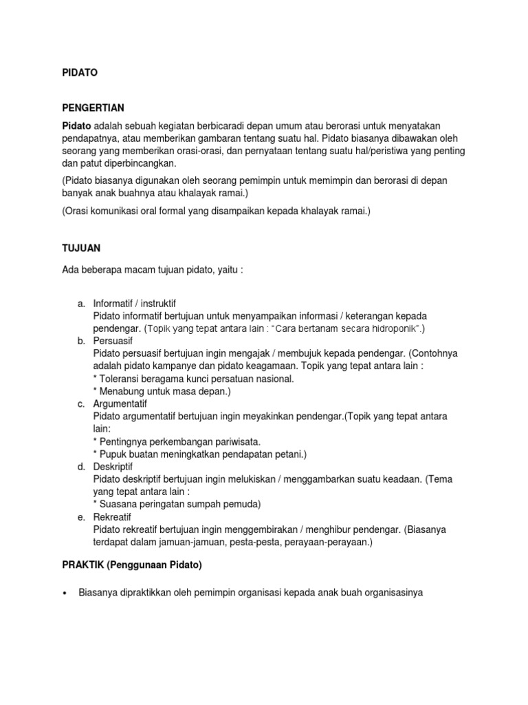 Bagian - Bab Teks Pidato, Tumpuan Pidato, Dan Tujuan Pidato | idn. paperplane