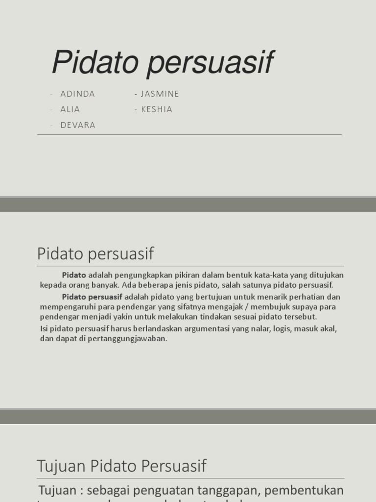 1. mengapa pidato tersebut termasuk ke dalam pidato persuasif?berikan alasanmu!2. jelaskan tujuan - Brainly.co.id