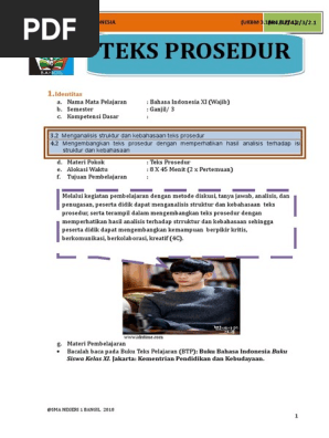 3.2 Menganalisis struktur dan kebahasaan teks prosedur; - 20. buat UKBM 3.2 4.2 Teks Prosedur