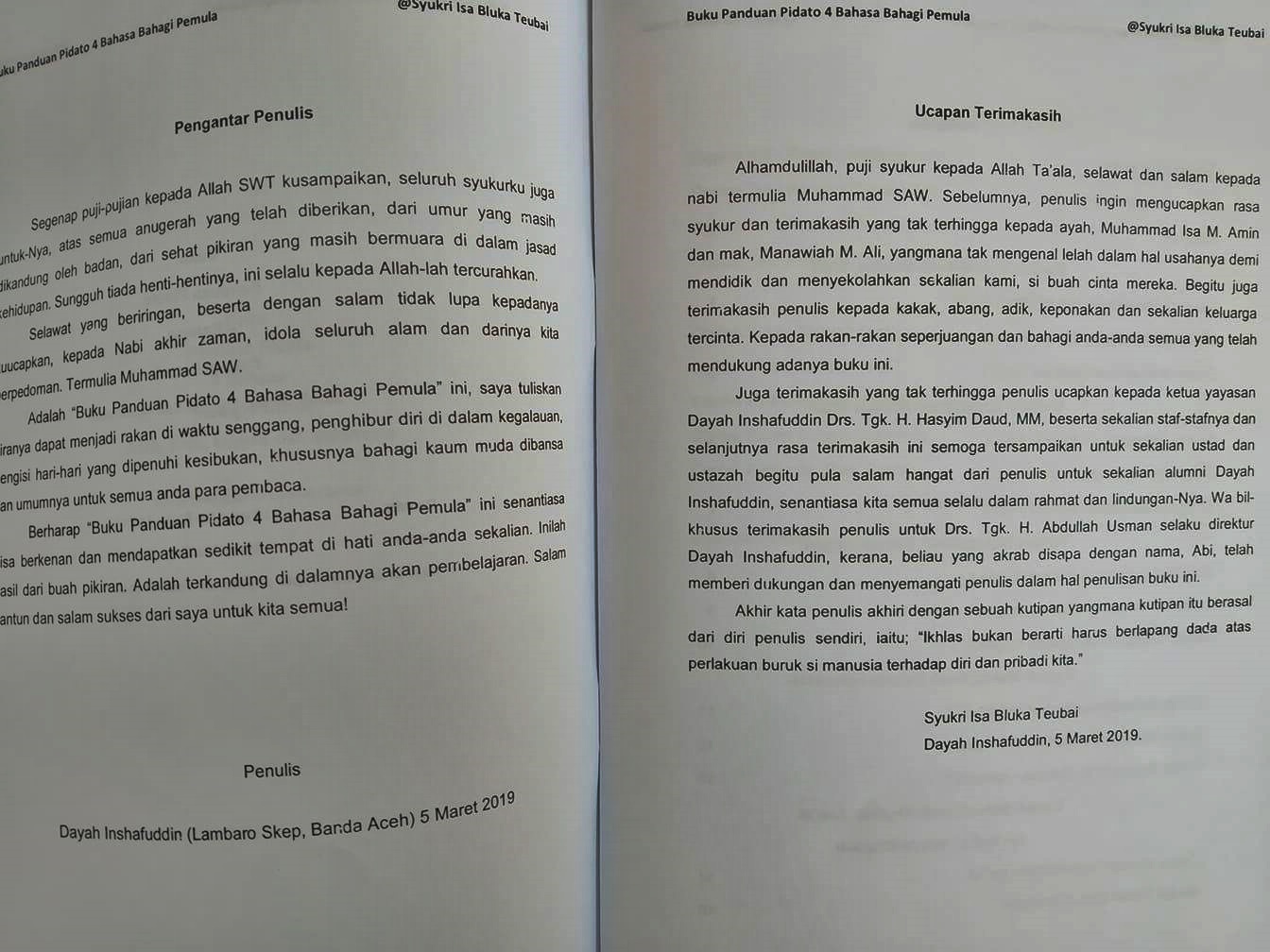 Buku Pidato 4 Bahasa Aceh, Arab, Inggris dan Indonesia Bahagi Pemula
