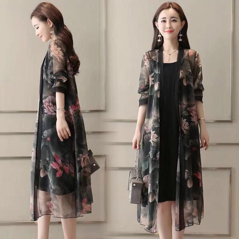 Jual cardigan lengan panjang elegan bahan sifon motif bunga utk musim panas - Jakarta Selatan - lotusmsshop | Tokopedia