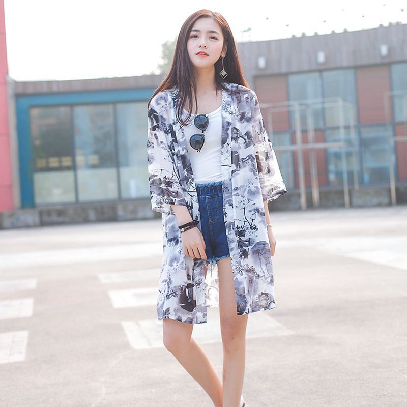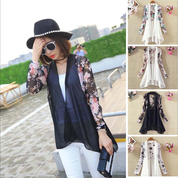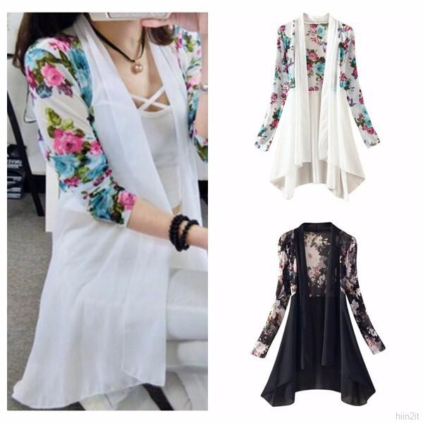 Cardigan Lengan Panjang Elegan Bahan Sifon Motif Bunga untuk Musim Panas | Shopee Indonesia