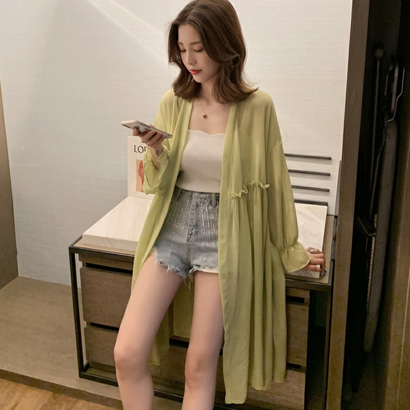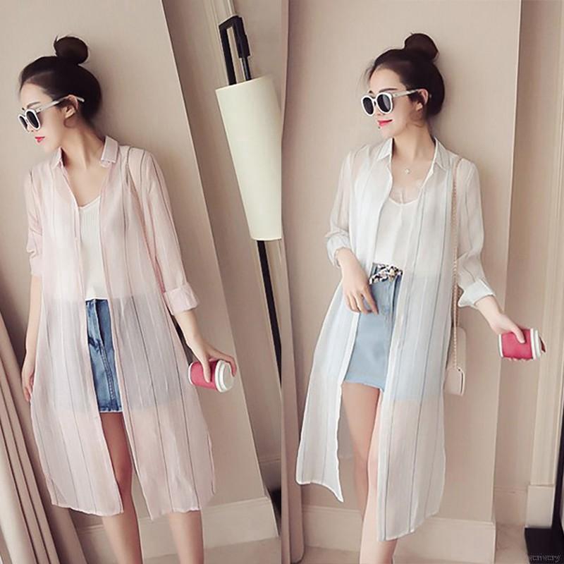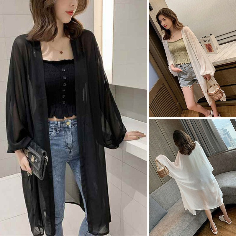 Women Long Sleeve Chiffon Long Cardigan Sun Protection Coat | Shopee Singapore