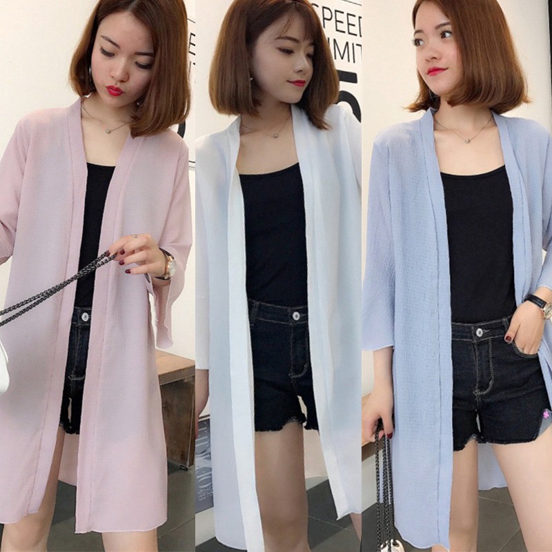 Cardigan Panjang Model Lengan Setengah Warna Polos Bahan Sifon Untuk Wanita | Shopee Indonesia