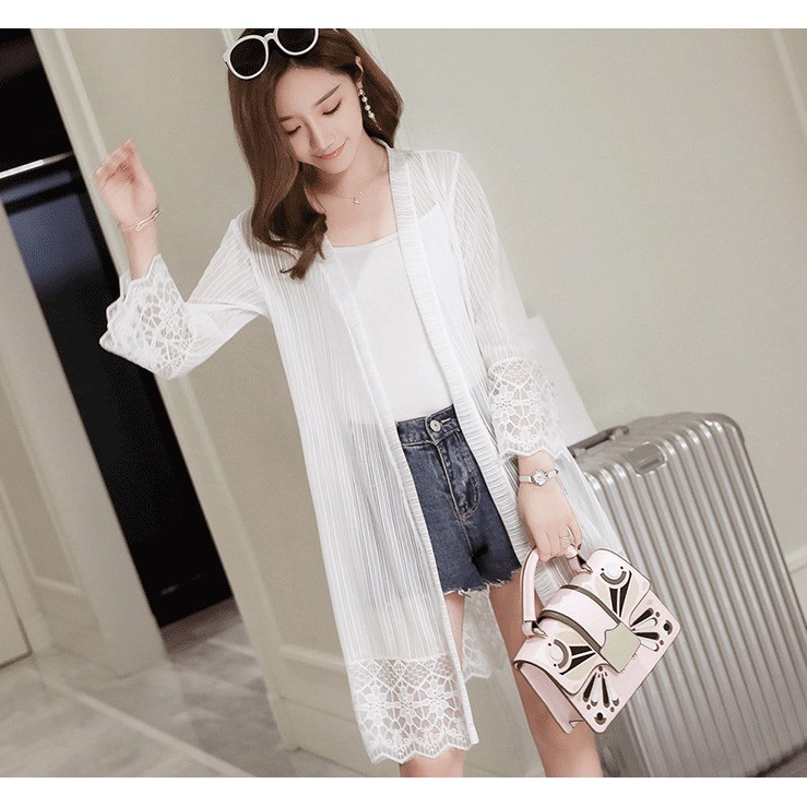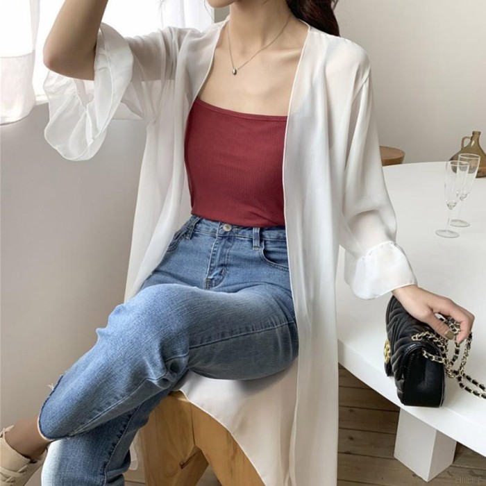 Cardigan Panjang Model Open Front Bahan Sifon Tipis untuk Wanita | Shopee Indonesia