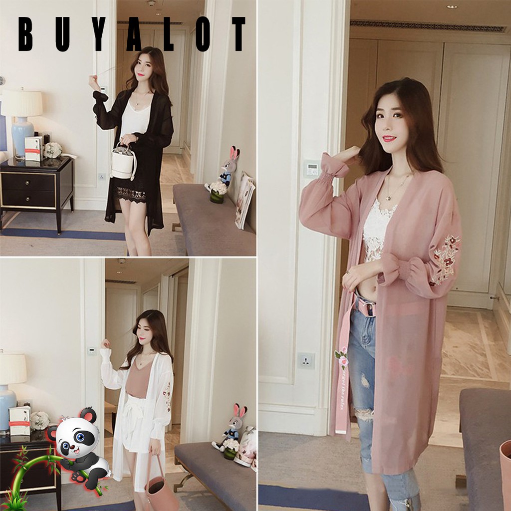 Cardigan Wanita Panjang Lengan Flare Bahan Sifon Motif Bordir Bunga untuk Wanita | Shopee Indonesia