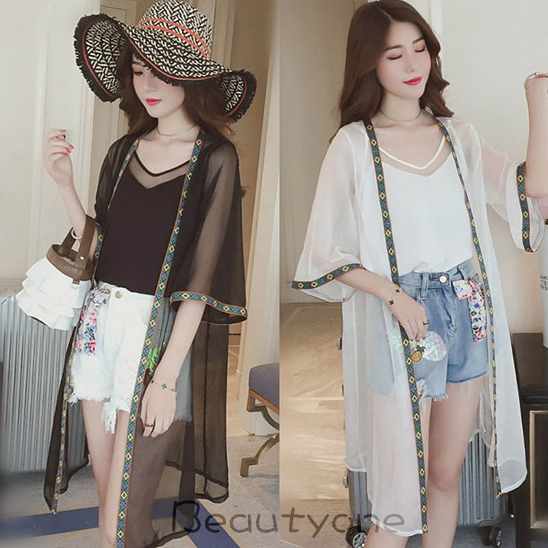 Cardigan Panjang Model Longgar Bahan Sifon untuk Pantai | Shopee Indonesia