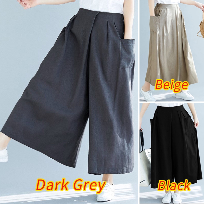Celana kulot linen polos celana kulot bahan katun rami polos Bawahan wanita pakaian wanita murah | Shopee Indonesia