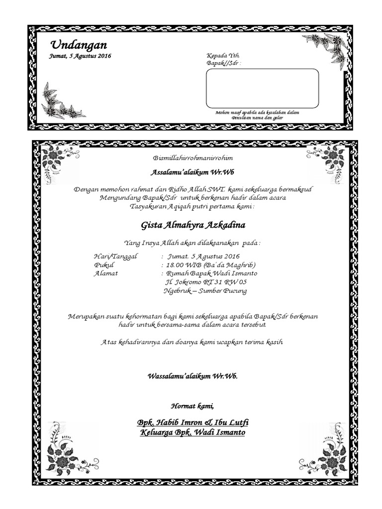 DOC) Contoh Surat Undangan Aqiqah | Kayancyber Kayancyber - Academia.edu