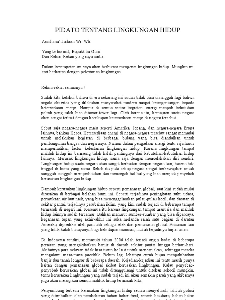 contoh pidato persuasif tentng lingkungan hidup - Brainly.co.id