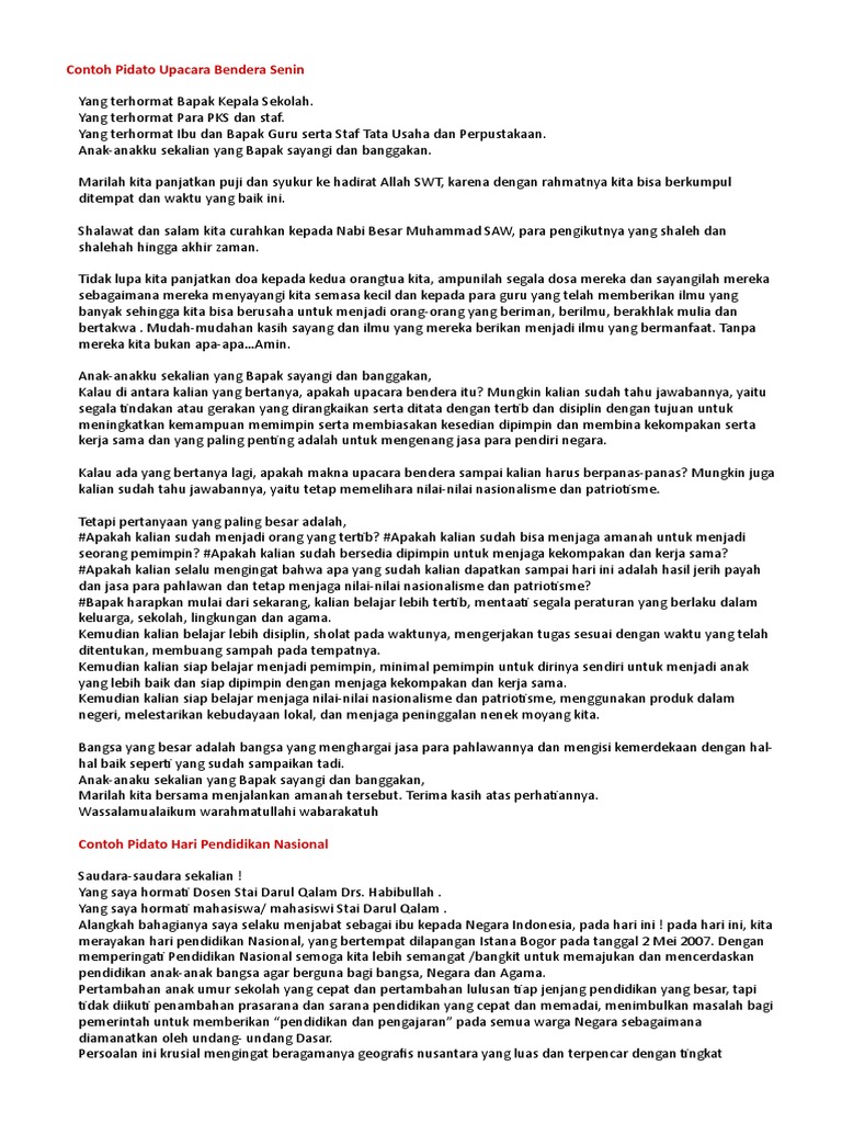 Contoh Pidato Upacara Bendera Senin - [DOC Document]