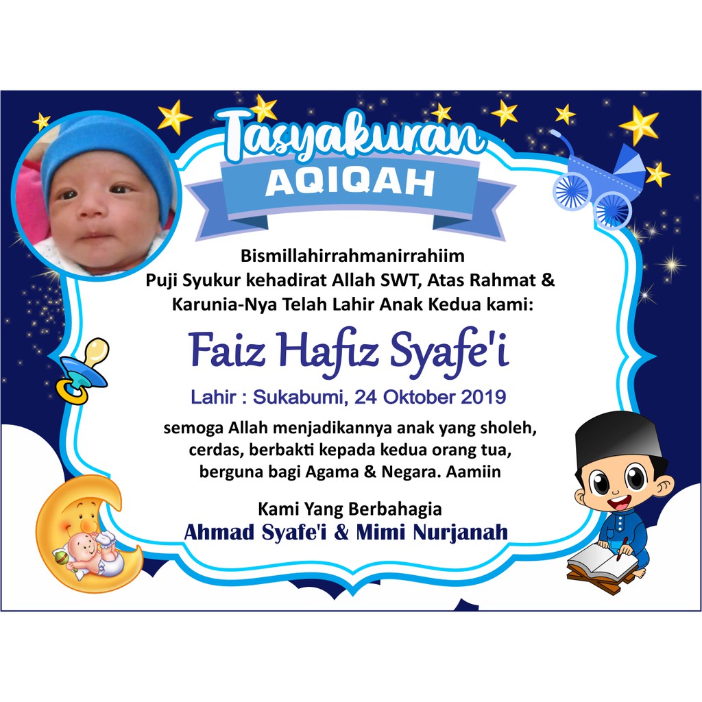 Kartu Lahiran / Kartu Ucapan Aqiqah / Akikah, Syukuran, Tasyakuran, Khitanan Custom | Shopee Indonesia