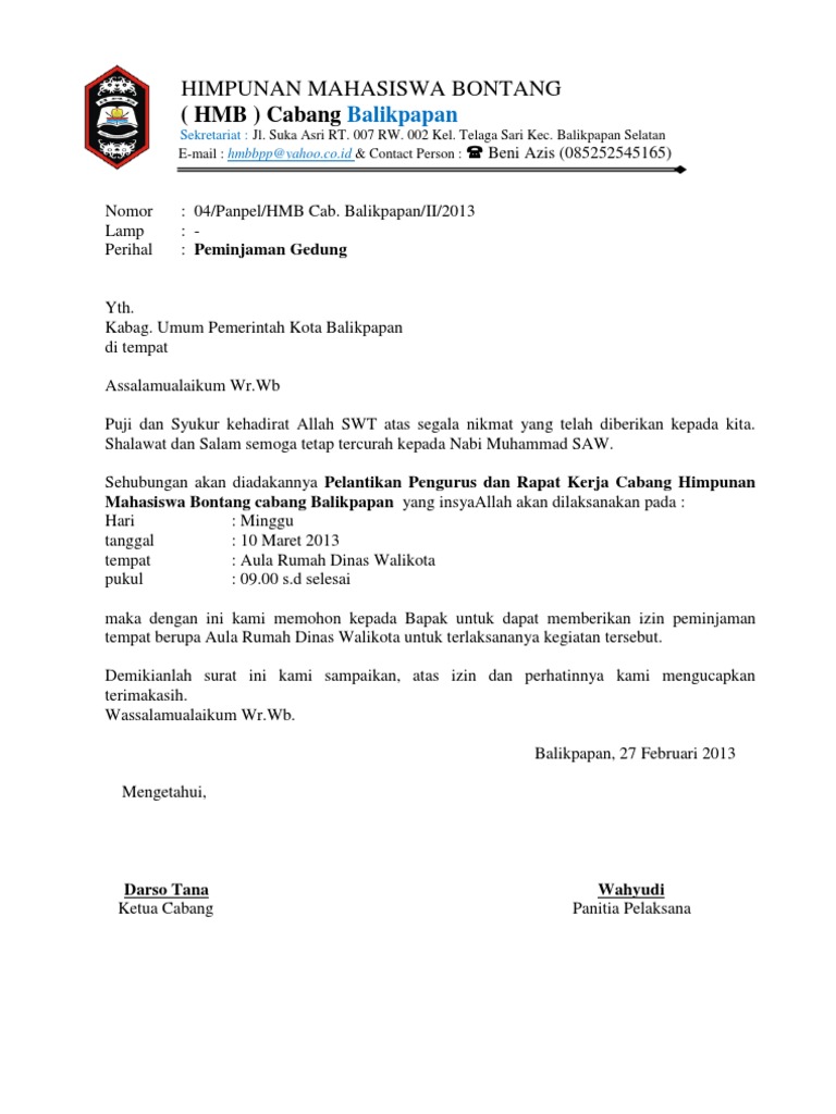 DOC) Contoh Surat Peminjaman Tempat dan Barang | Ihtiandiko Wicaksono - Academia.edu