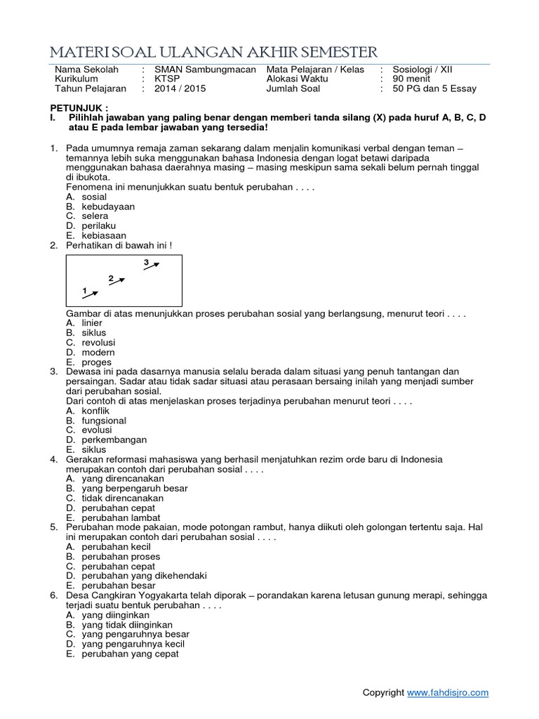 Contoh Soal Sosiologi Tentang Perubahan Sosial - Bagikan Contoh