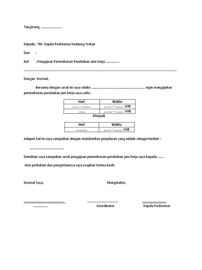 DOC) surat pernyatan permohonan perubahan jam kerja | Asep Nugraha - Academia.edu