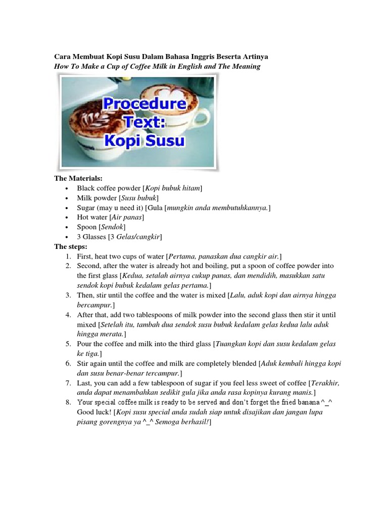 Contoh Teks Prosedur Bahasa Inggris Membuat Kopi - Dapatkan Contoh