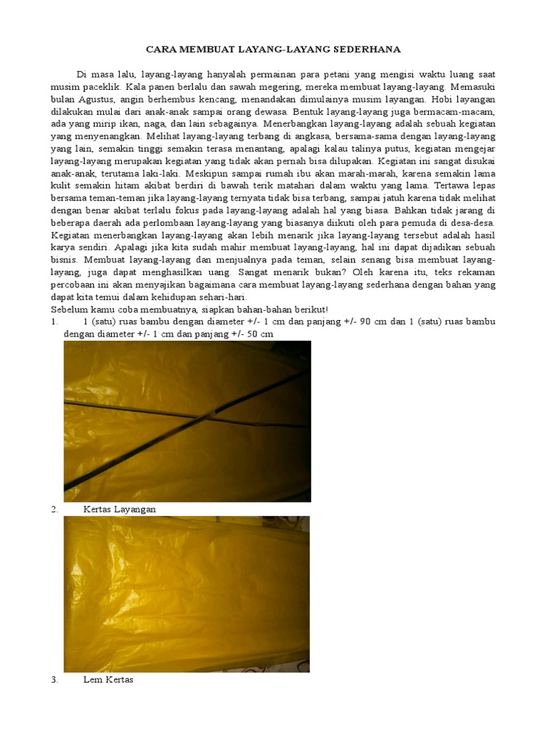 Contoh Teks Prosedur Cara Membuat Layang Layang
