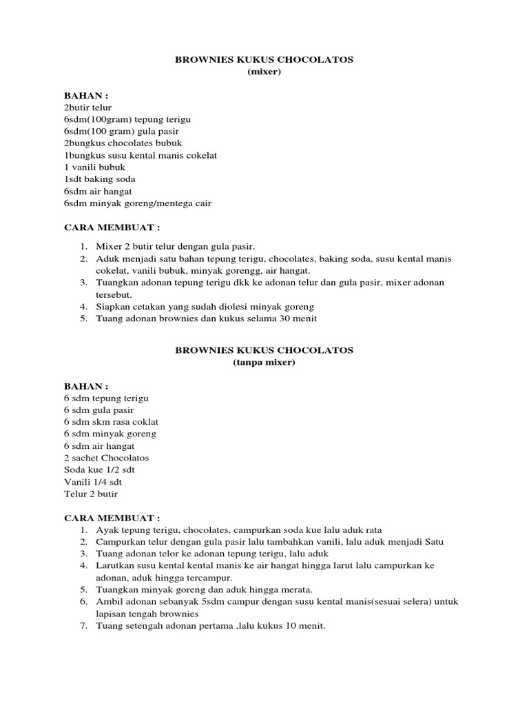 Cara Membuat Kue Brownies Kukus Dengan Chocolatos