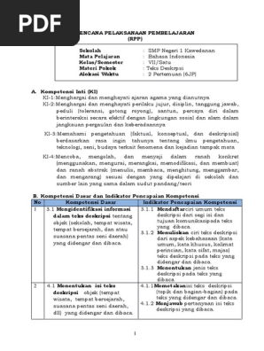 DOC) RPP BAHASA INDONESIA VII TEKS DESKRIPSI | Asisten Nur …