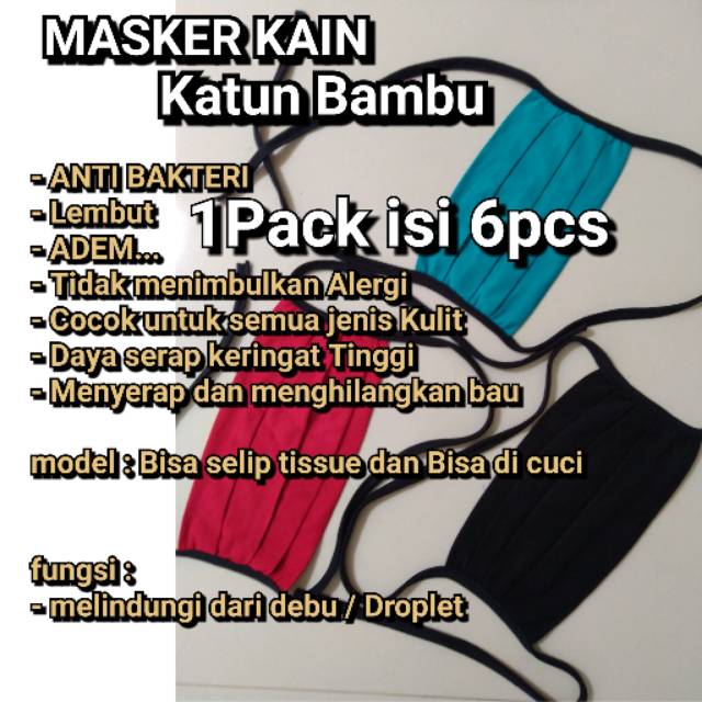 Masker kain katun bambu bisa selip tissue / bisa di cuci | Shopee Indonesia