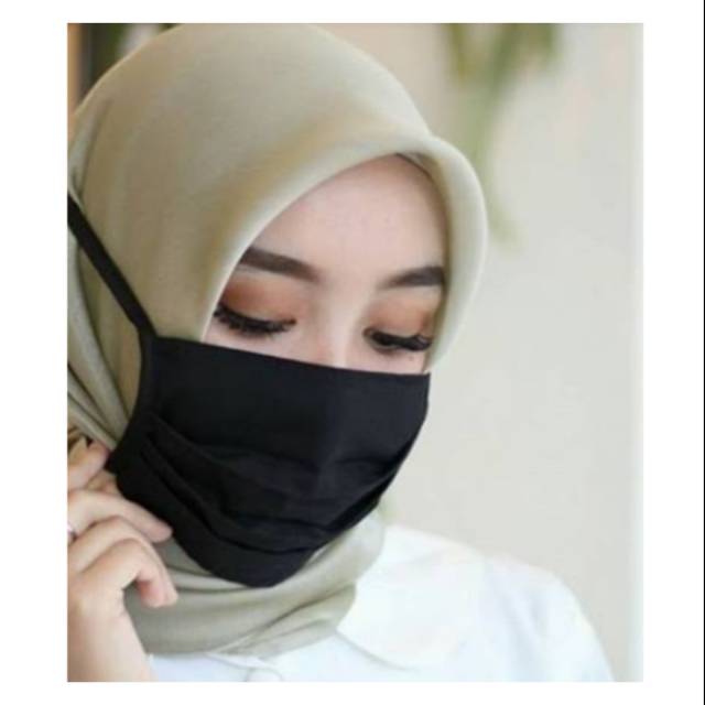 Masker kain hitam jilbab hijab mask tali ikat kerudung model 3 ply anti polusi debu | Shopee Indonesia