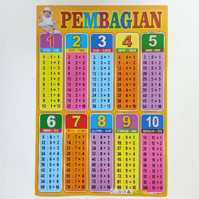 Opredo Poster pintar Tabel Perkalian dan Pembagian : Bukubukularis …