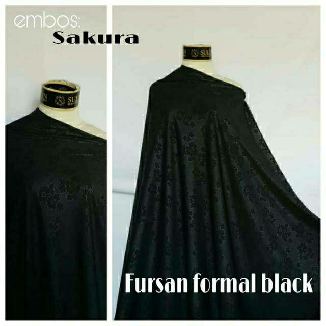 Grosir Kain abaya gamis jetblack fursan silk emboss motif sakura dan flowerlace .,.,. | Shopee Indonesia