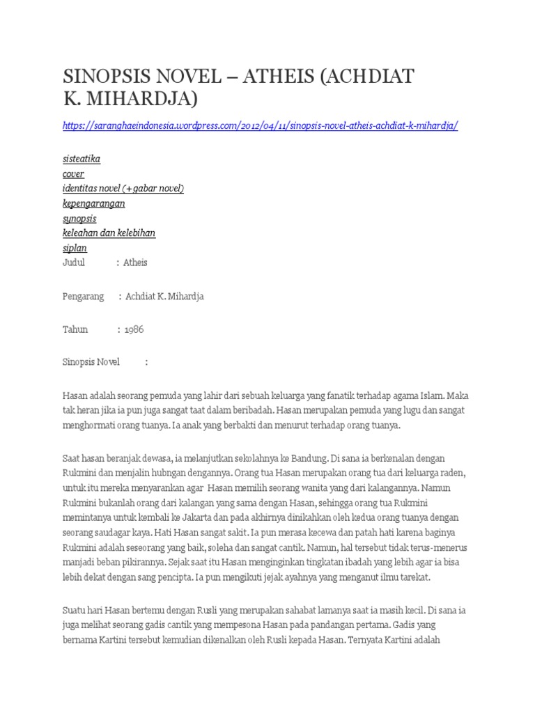 Sinopsis Novel Atheis | rumpunsastra