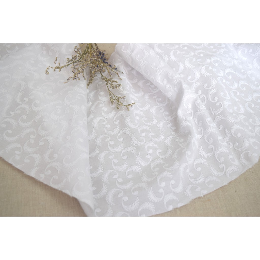 Toko Kain Grosir] Kain Mukena Kain Katun Bordir Putih lebar 130 - Ethnic | Shopee Indonesia