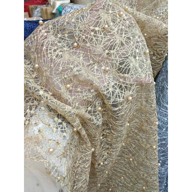 Kain brokat tile mutiara renda terbaru. tulle brukat mutiara. tule - gold | Lazada Indonesia