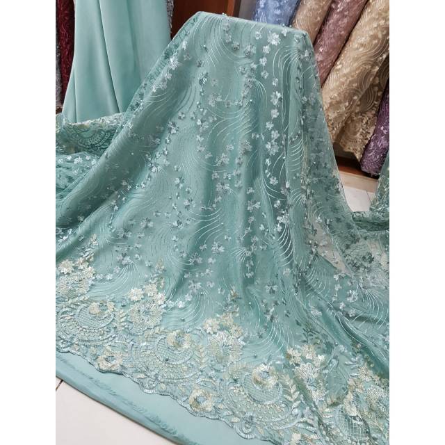 Jual kain renda mutiara/kain renda kebaya/brokat warna hijau toska - Kota Medan - elpirashop07 | Tokopedia