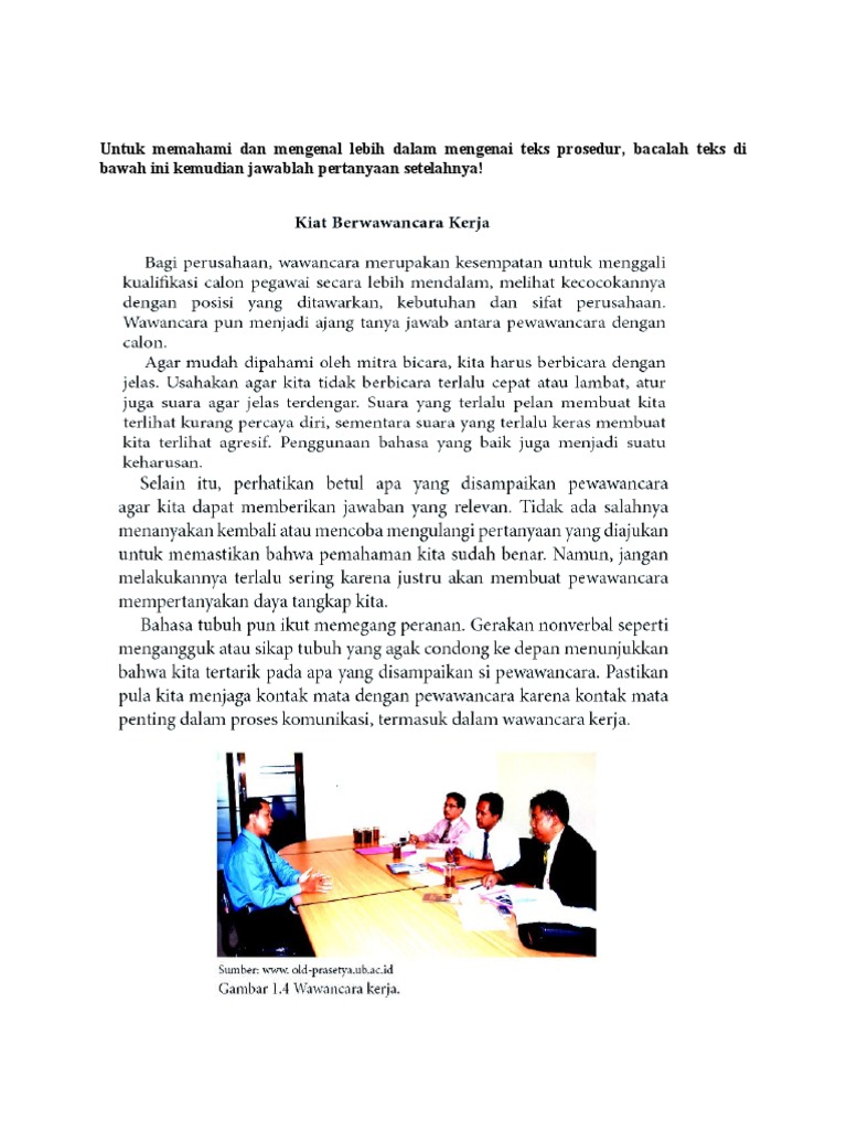 Menelaah Teks Prosedur Kiat Berwawancara Kerja