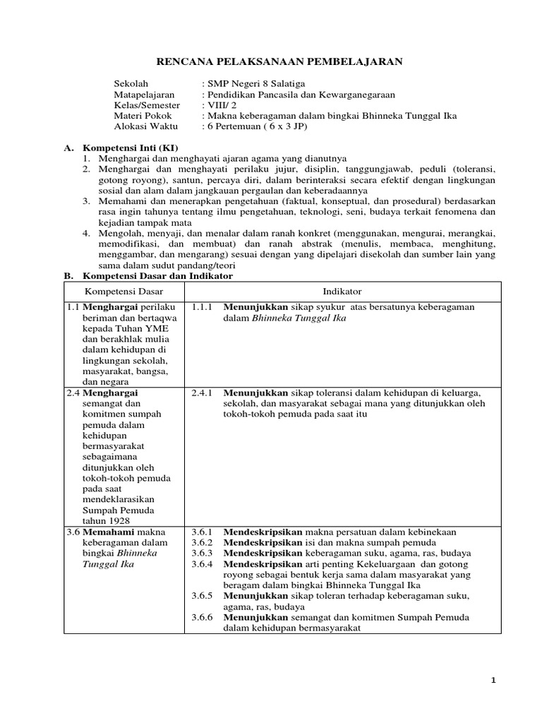 Rencana Pelaksanaan Pembelajaran: A. Kompetensi Inti (KI)