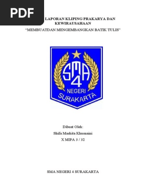Membuatdan Mengembangkan Batik Tulis”: Tugas Laporan Kliping Prakarya Dan Kewirausahaan