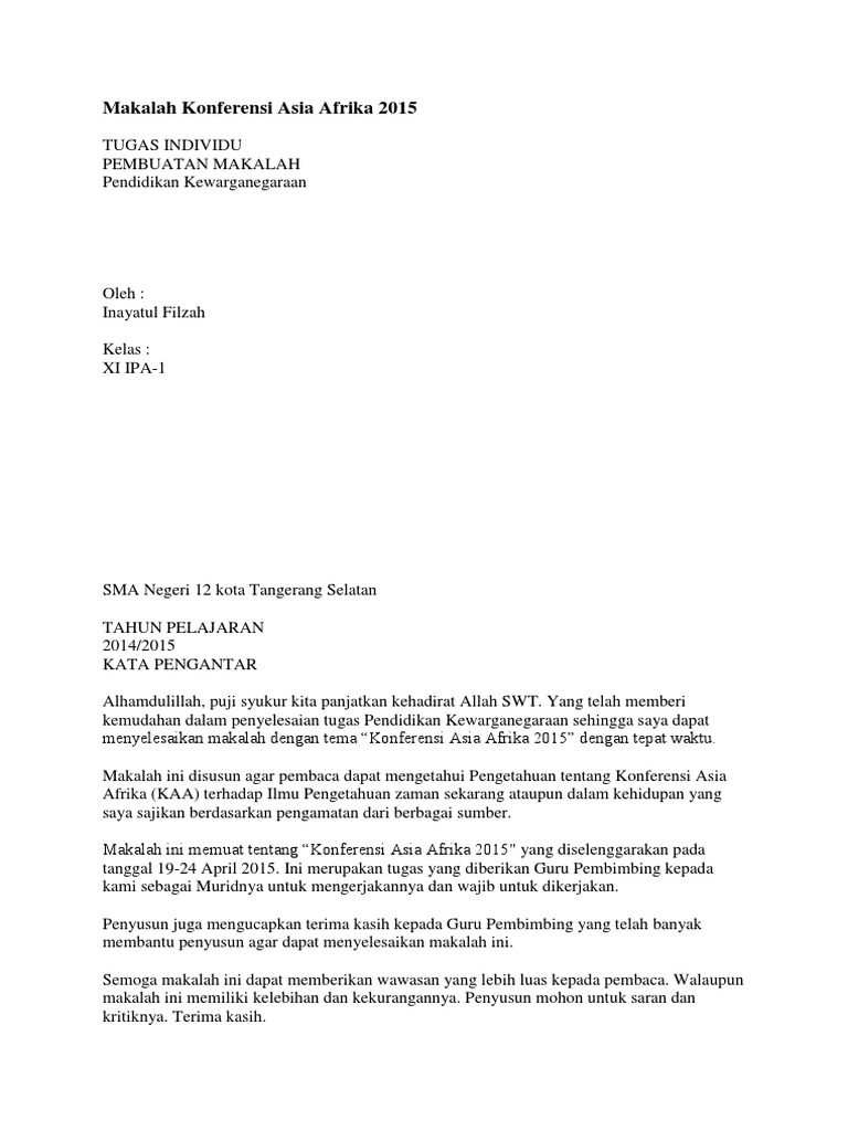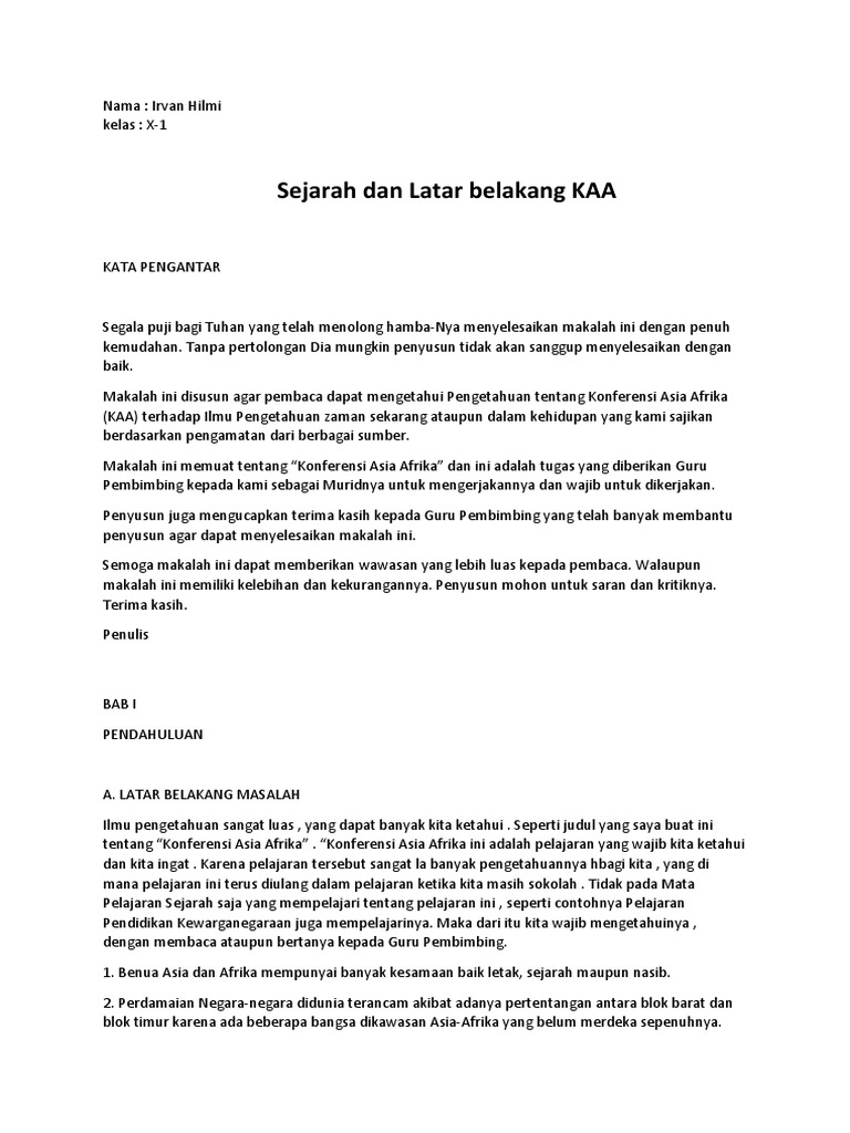 Makalah tentang konferensi asia afrika.docx - Makalah tentang konferensi asia afrika KAA Dibuat oleh RIFKY AUFA MUZAKKY KELAS XII IIS i Kata pengantar | Course Hero