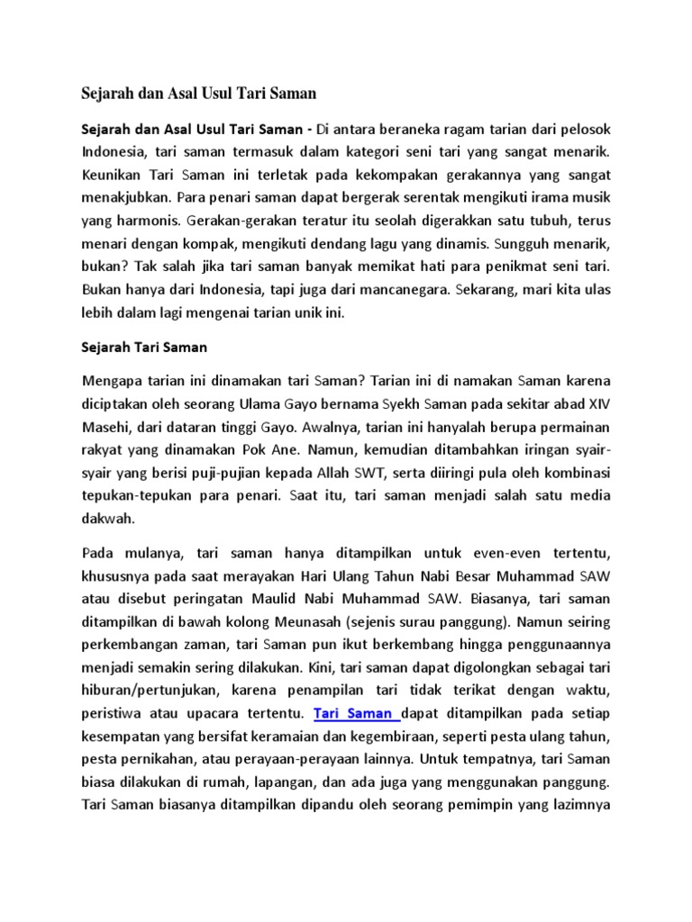 DOC) Sejarah Dan Asal Usul Tari Saman | intan fadilah - Academia.edu