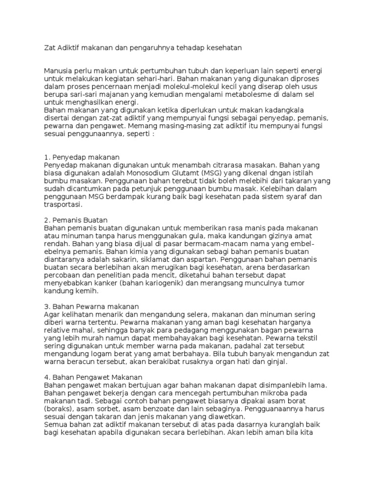 Zat Adiktif Makanan Dan Pengaruhnya Tehadap Kesehatan
