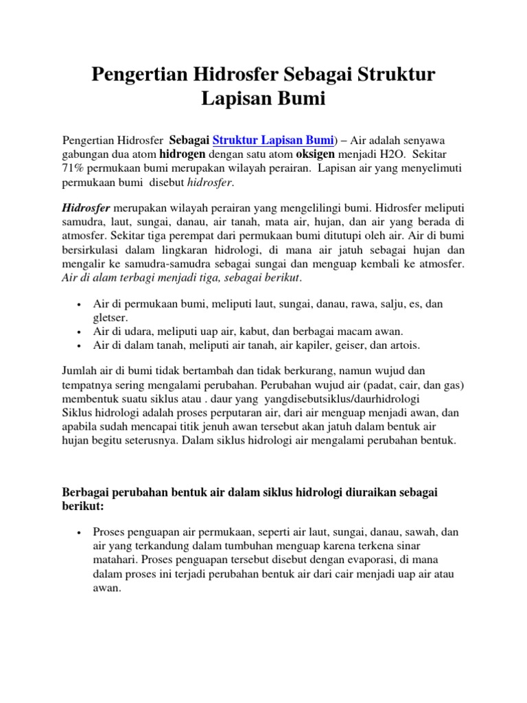 Pengertian Hidrosfer Sebagai Struktur Lapisan Bumi