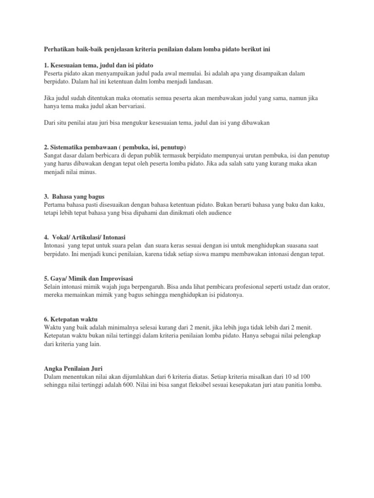 Aspek Penilaian Lomba Pidato Bahasa Indonesia - Ada Lomba
