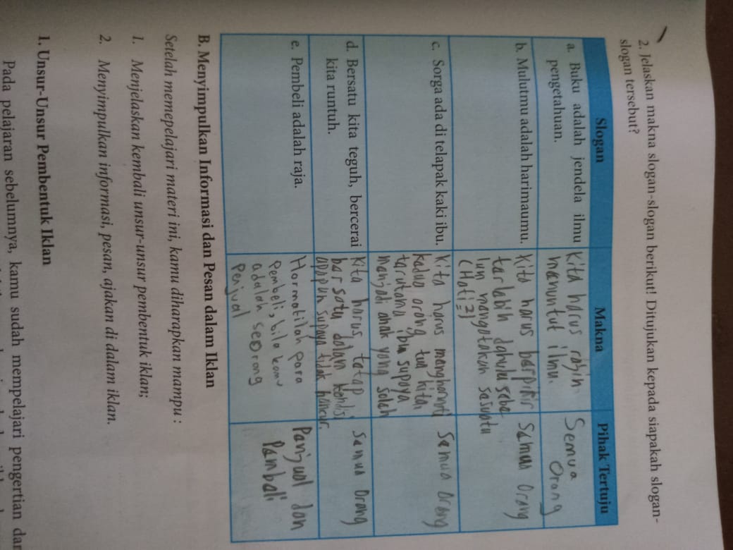 D. Tentukan makna slogan-slogan berikut. buku mandirihal. 33-34 - Brainly.co.id