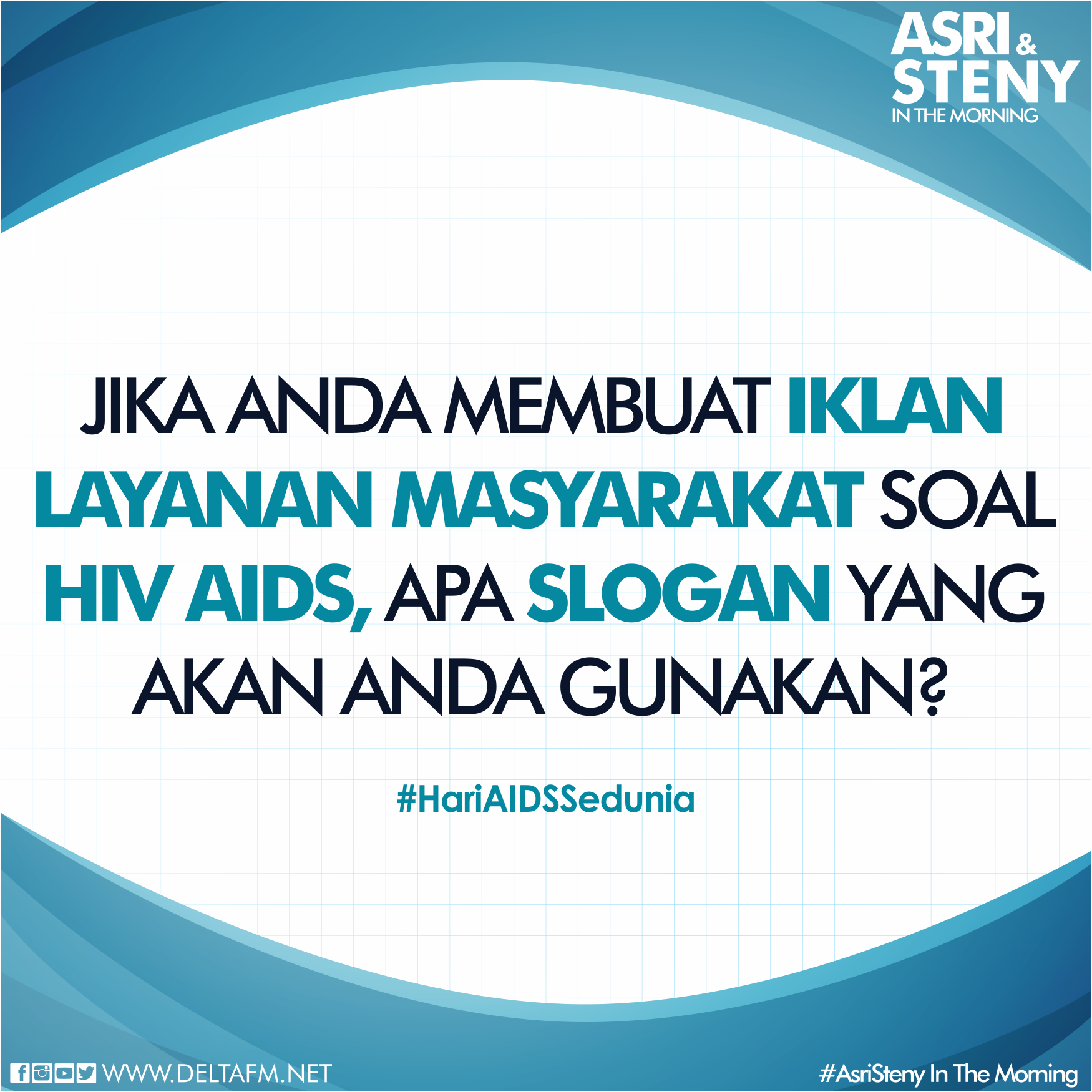 99.1 DeltaFM Jakarta on Twitter: “Slogan yang Anda gunakan ketika membuat iklan soal HIV AIDS? #AsriSteny @Asri_Welas @St_agustaf (021-72800886) https://t.co/d1K7w4HXl5”