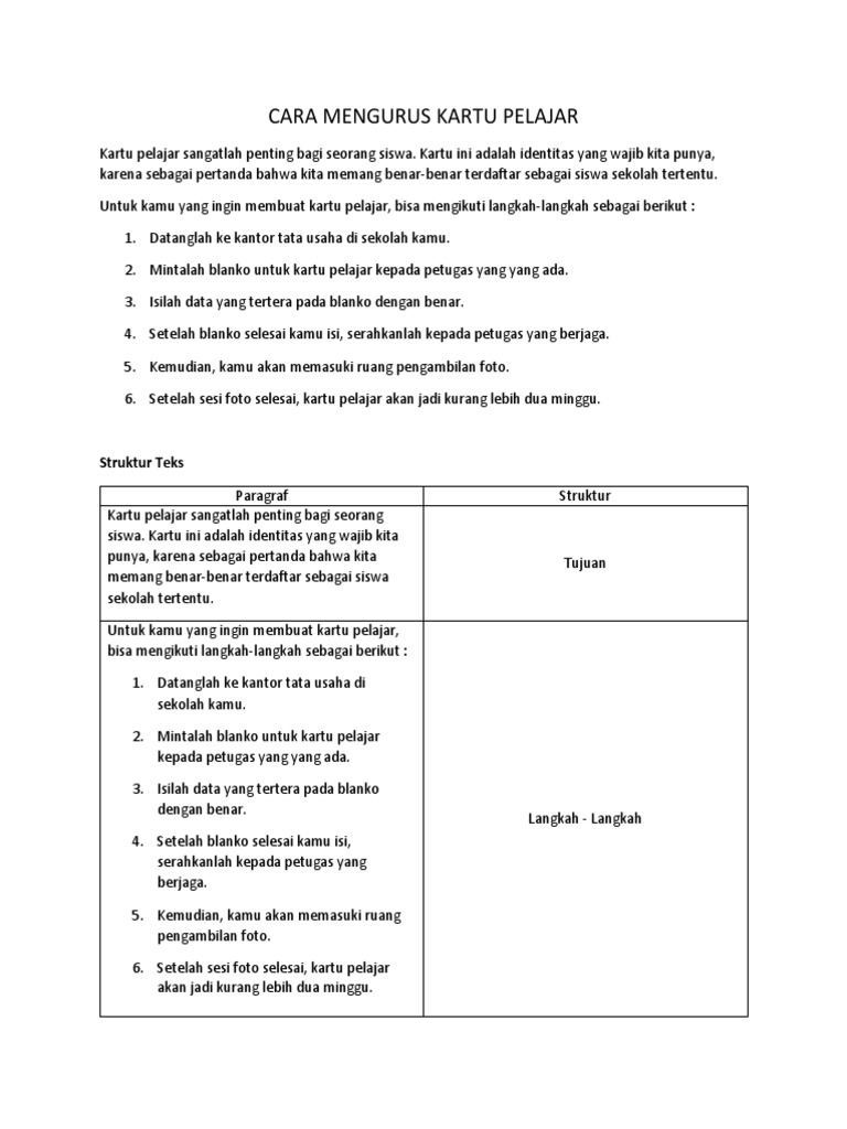 Cara Mengurus Kartu Pelajar: Struktur Teks
