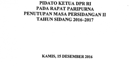 Naskah Pidato Ketua DPR pada Rapat Paripurna Penutupan Masa Persidangan II Tahun Sidang 2016-2017 - pshk.or.id